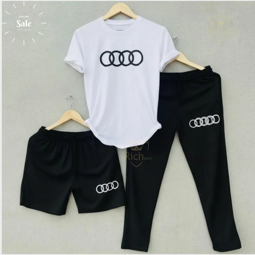 Audi Logo Summer Tracksuit Set – Pack of 3 (T-Shirt, Short & Trouser) – at One Spot
