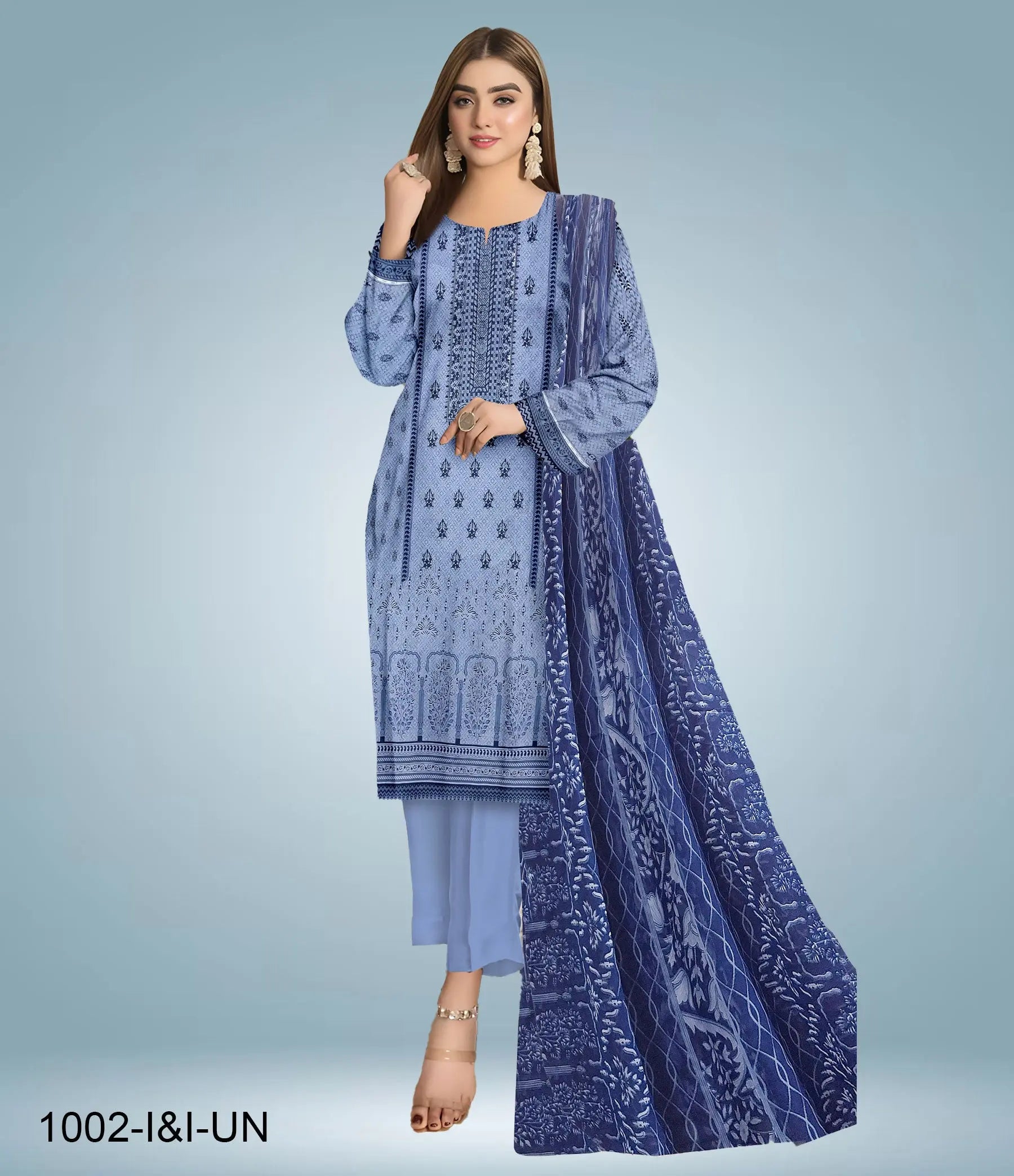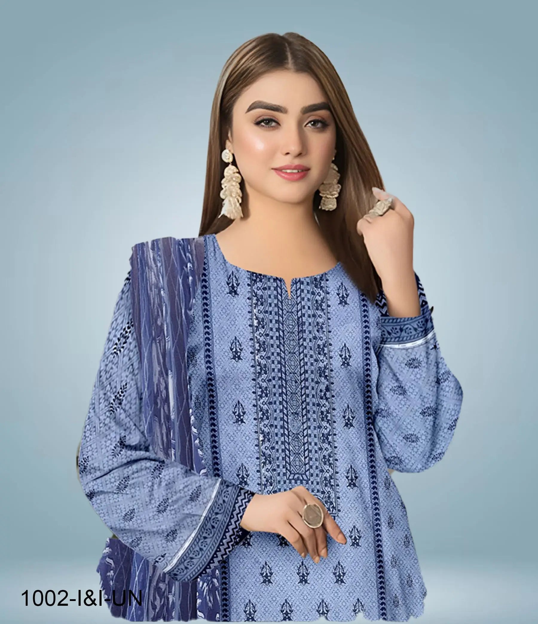 • Unstitched Embroidered Lawn 3 Piece Suit | 1002-I&I-UN